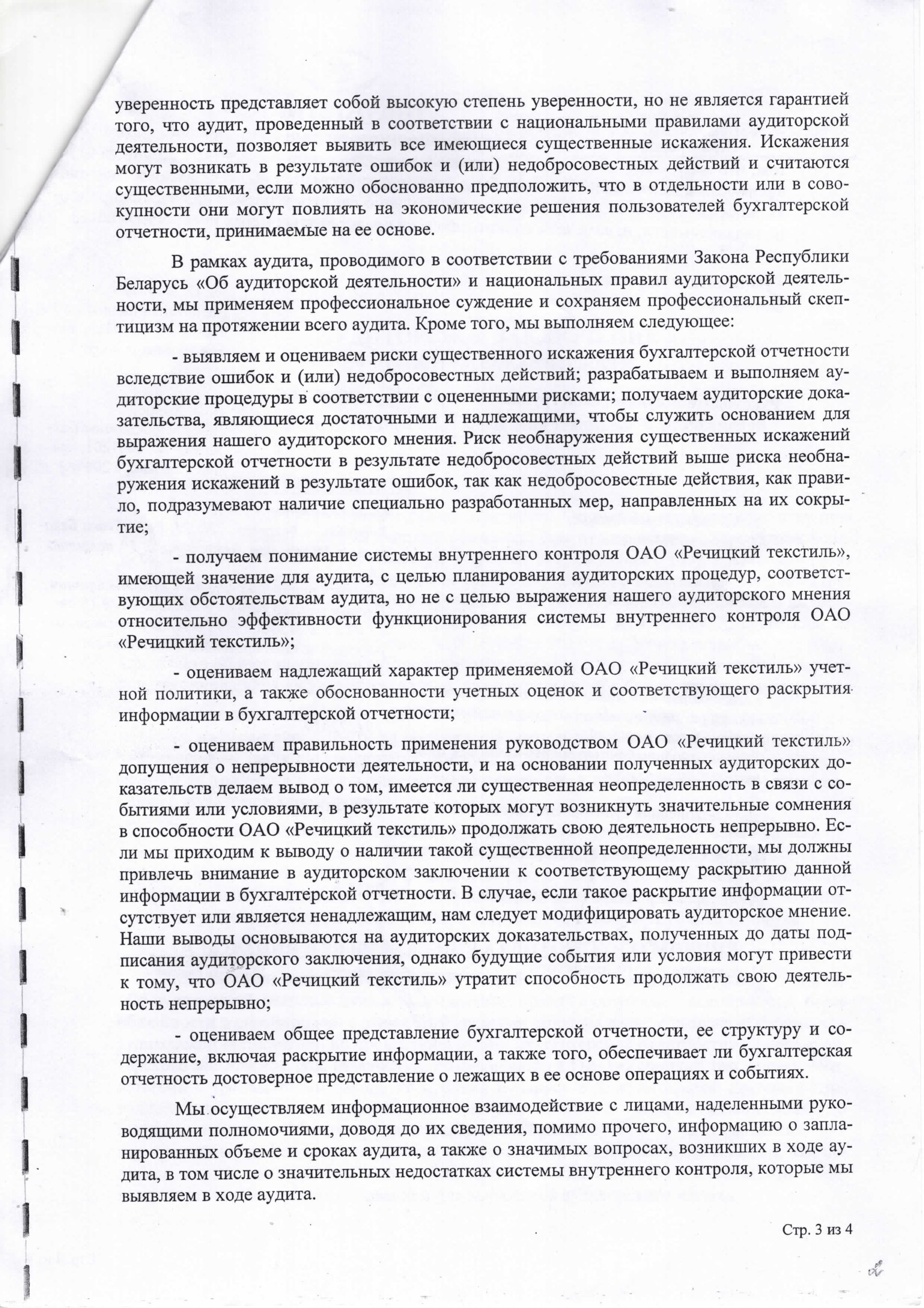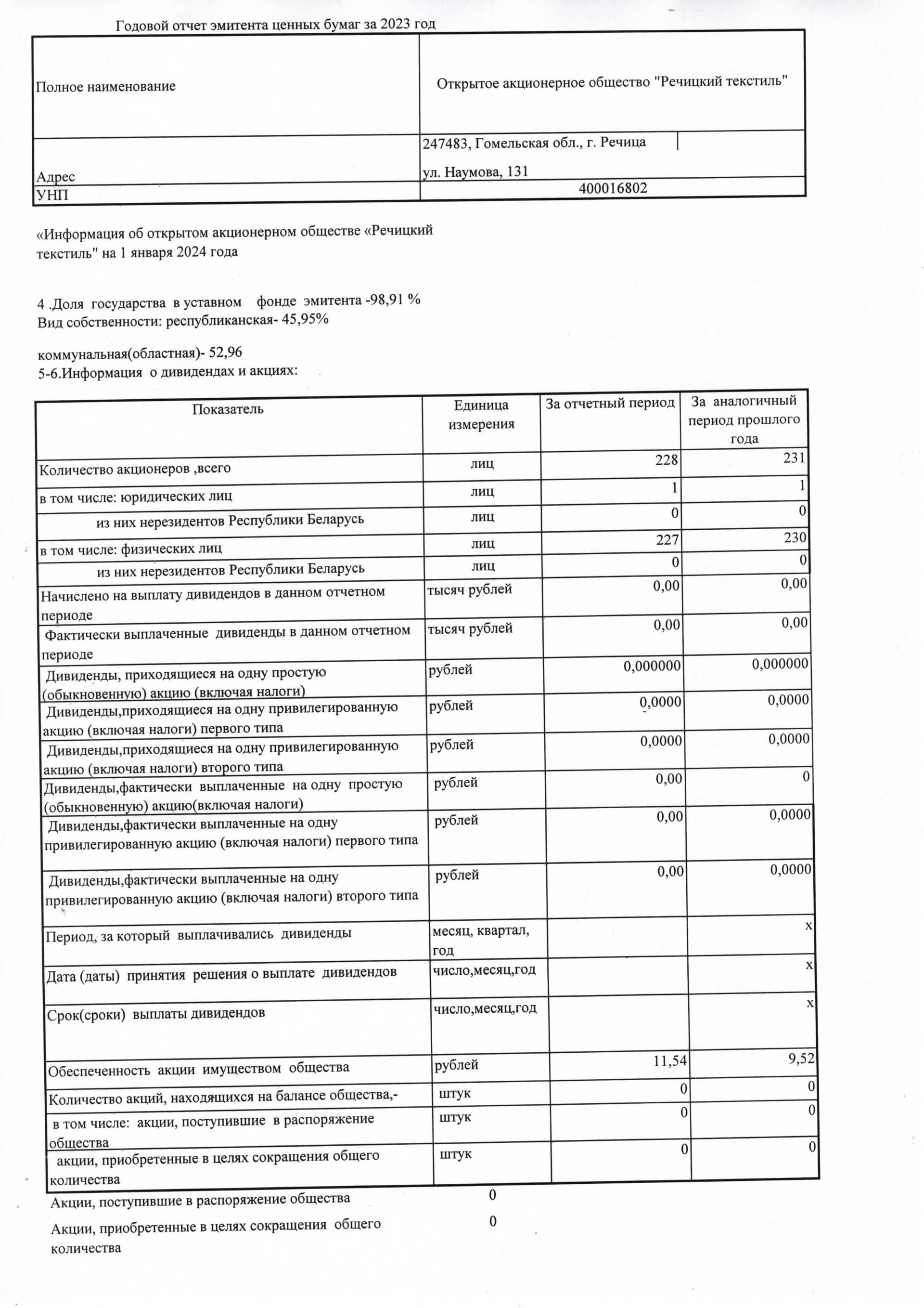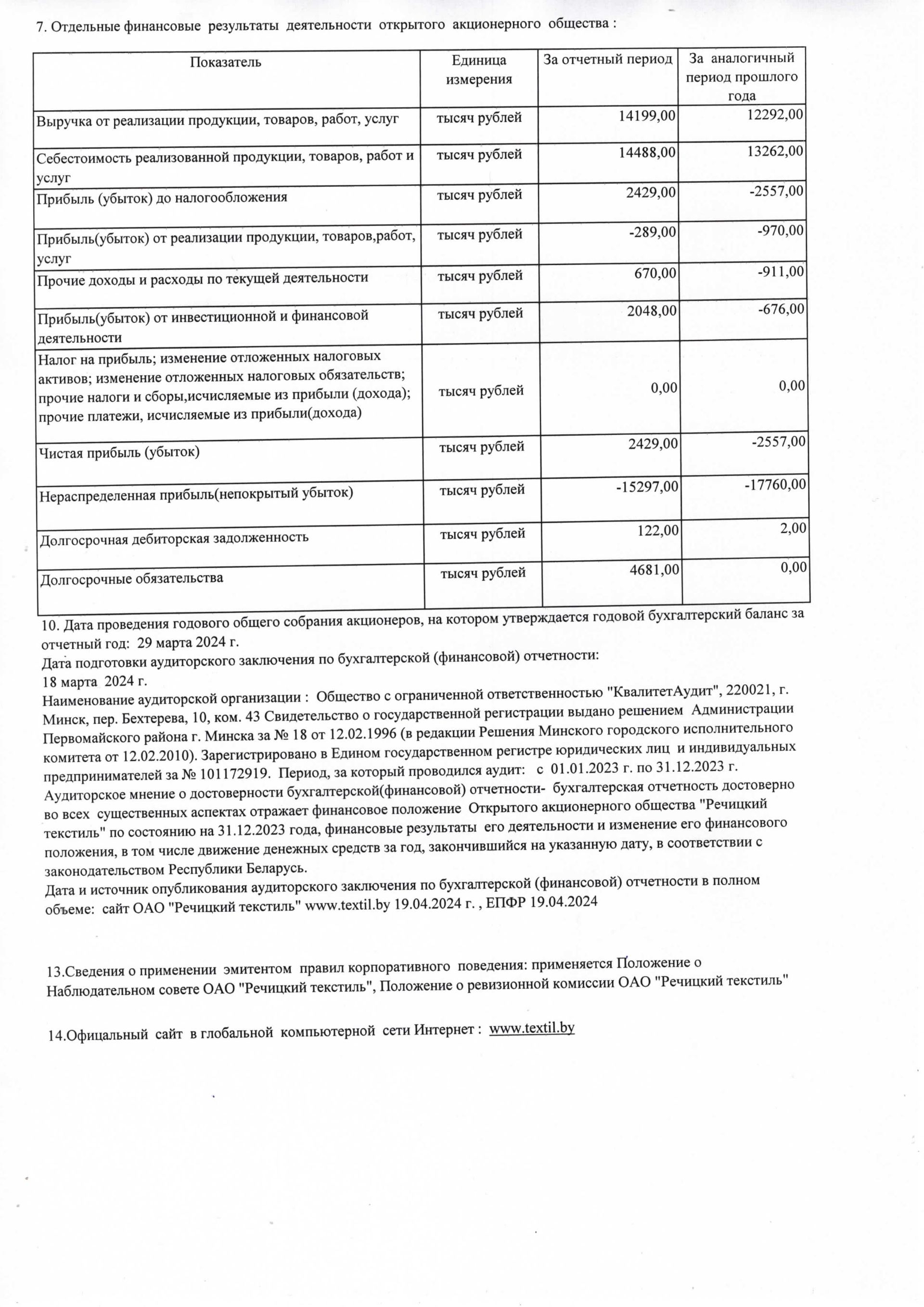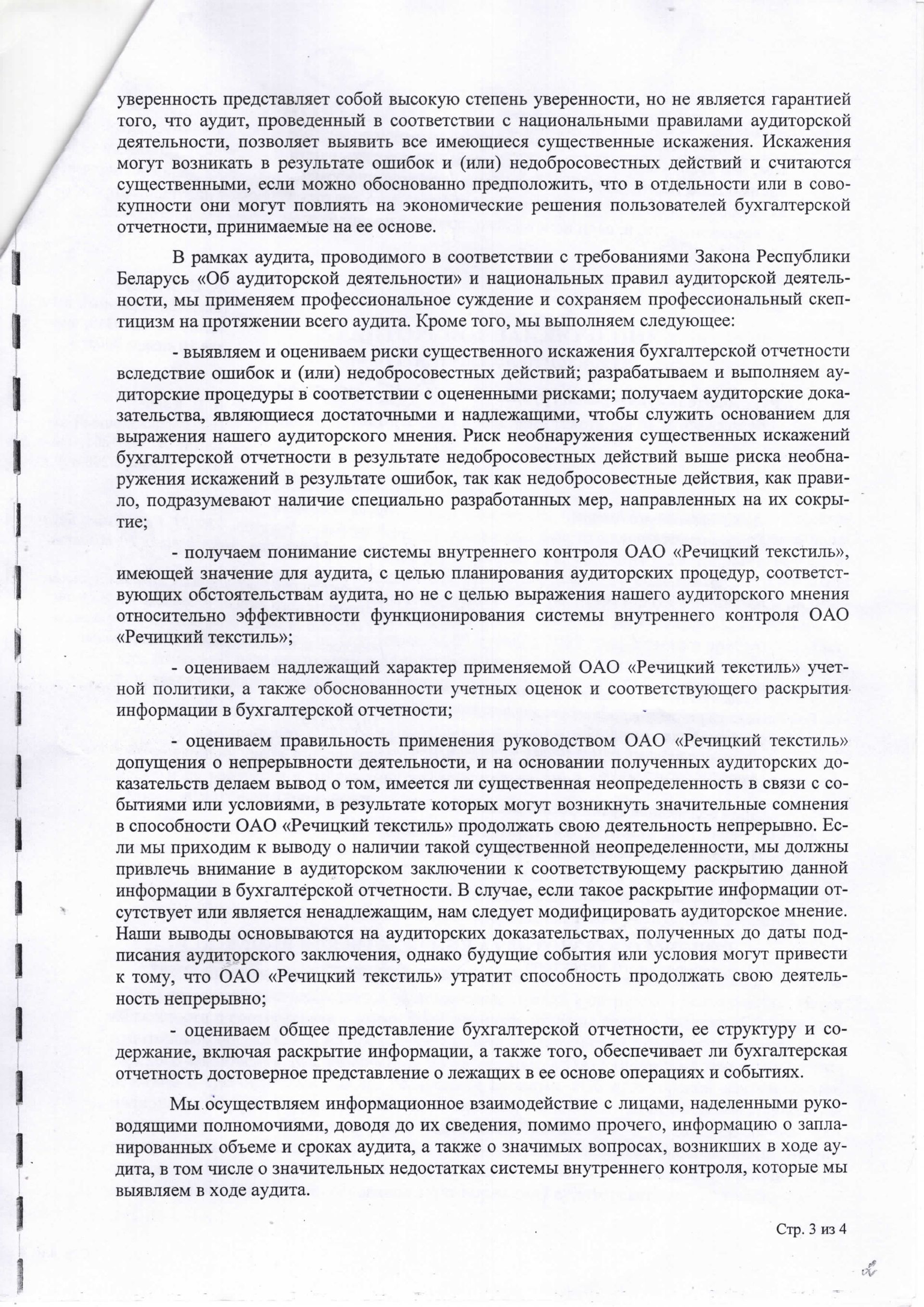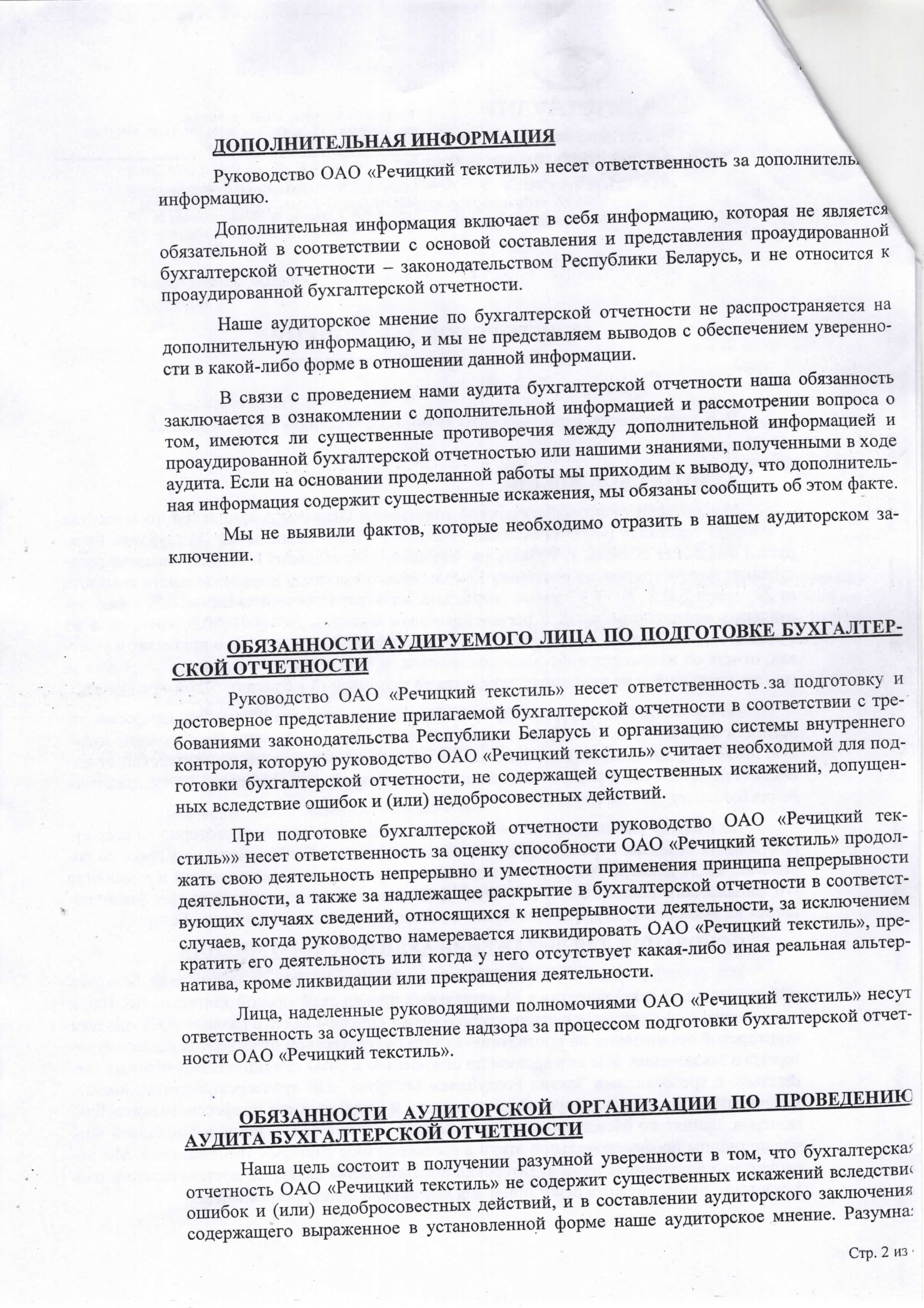 Годовая отчетность ОАО "Речицкий текстиль" на 01.01.2024