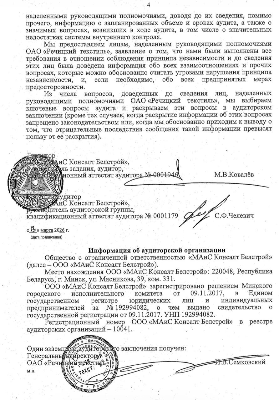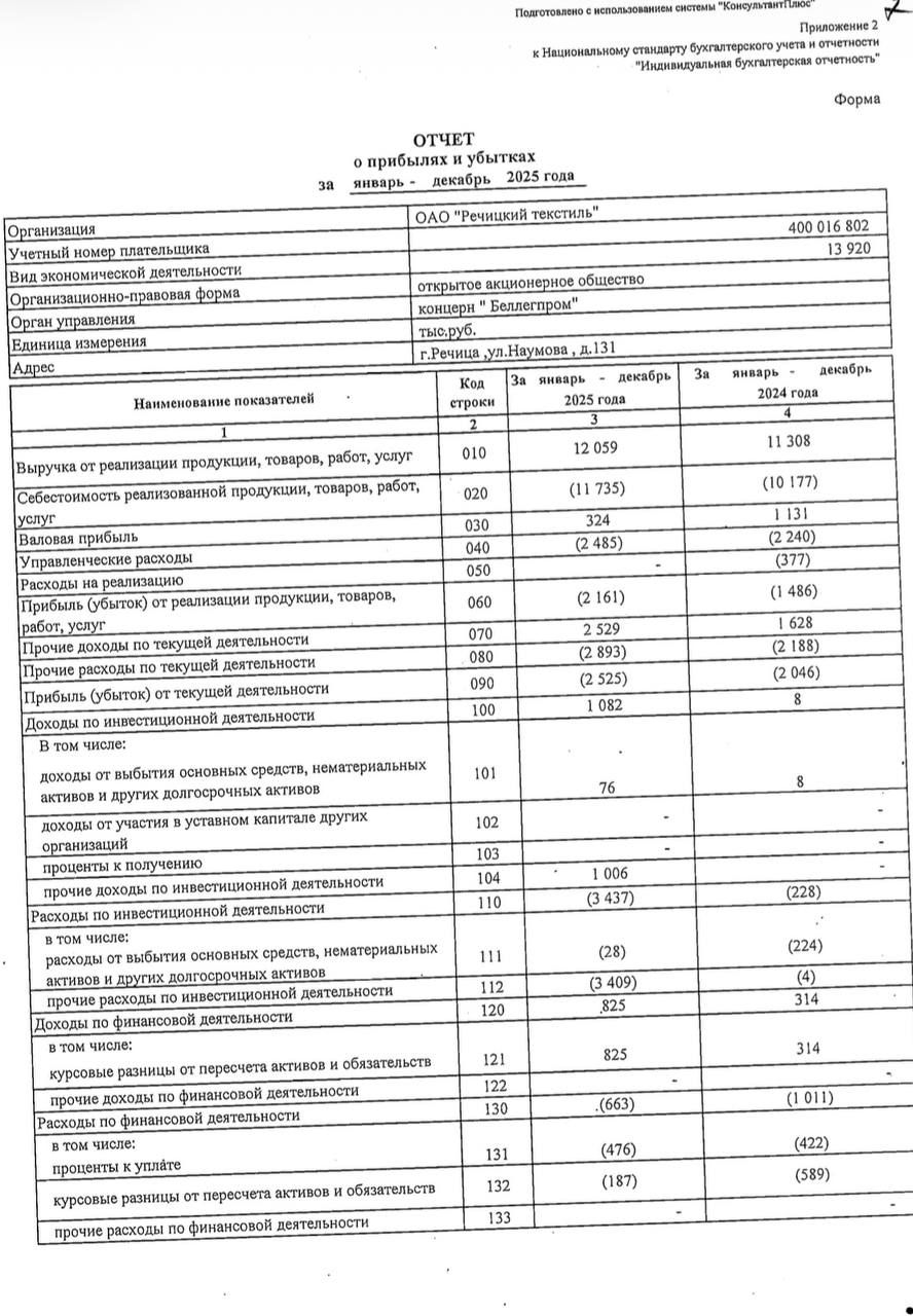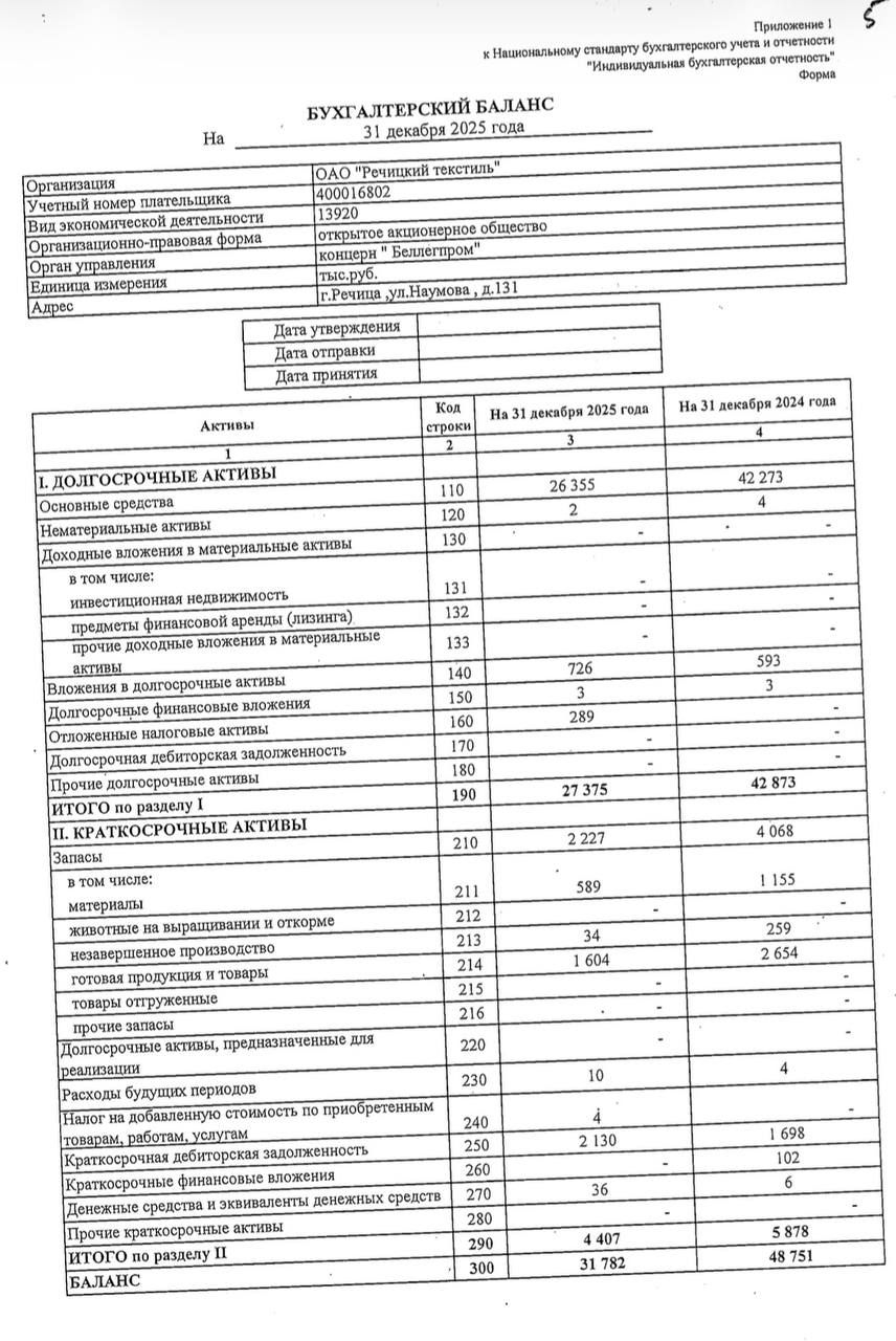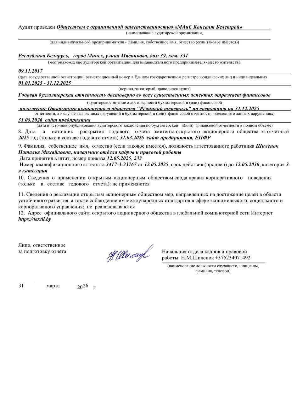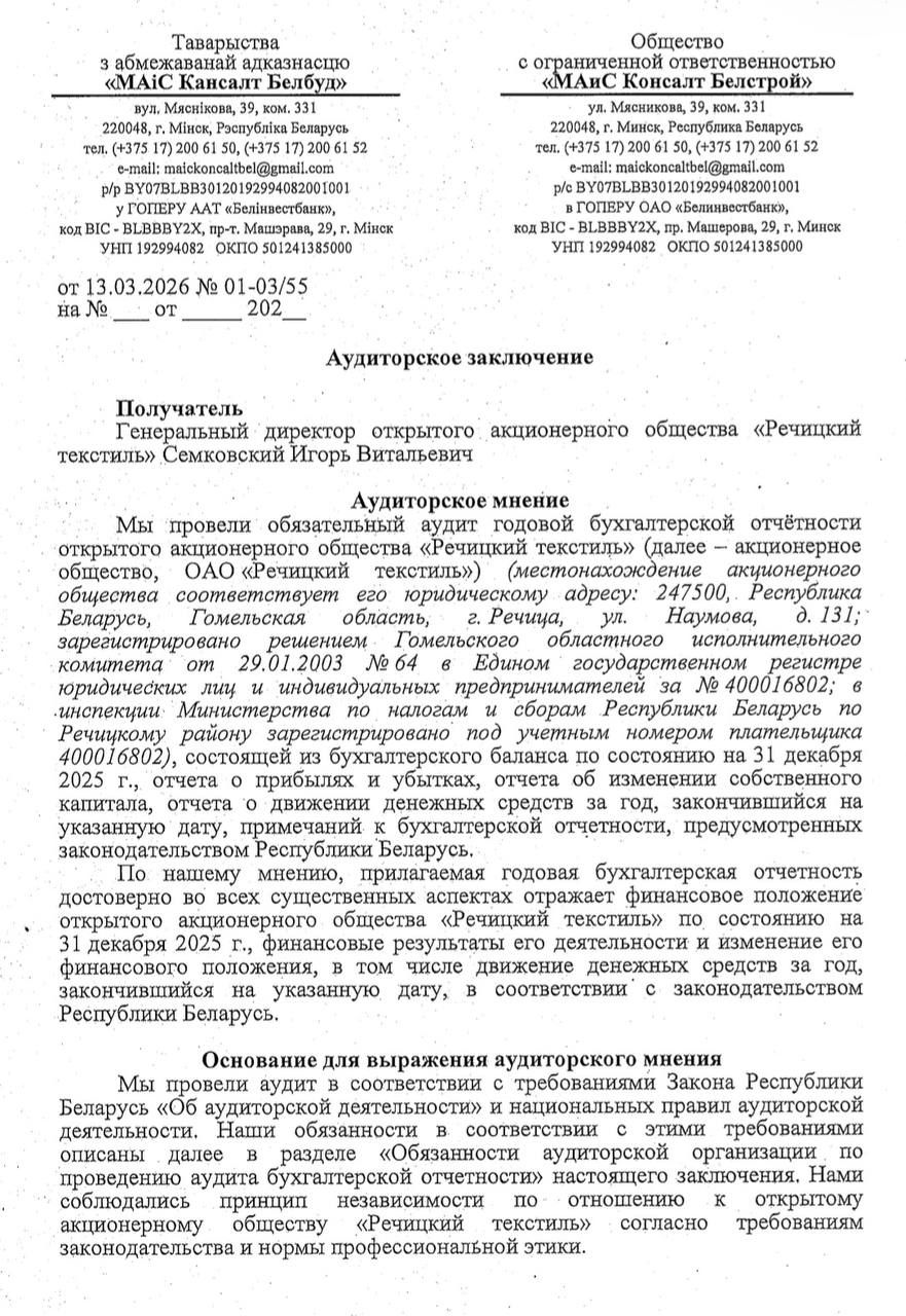 Годовой отчет ОАО "Речицкий текстиль"