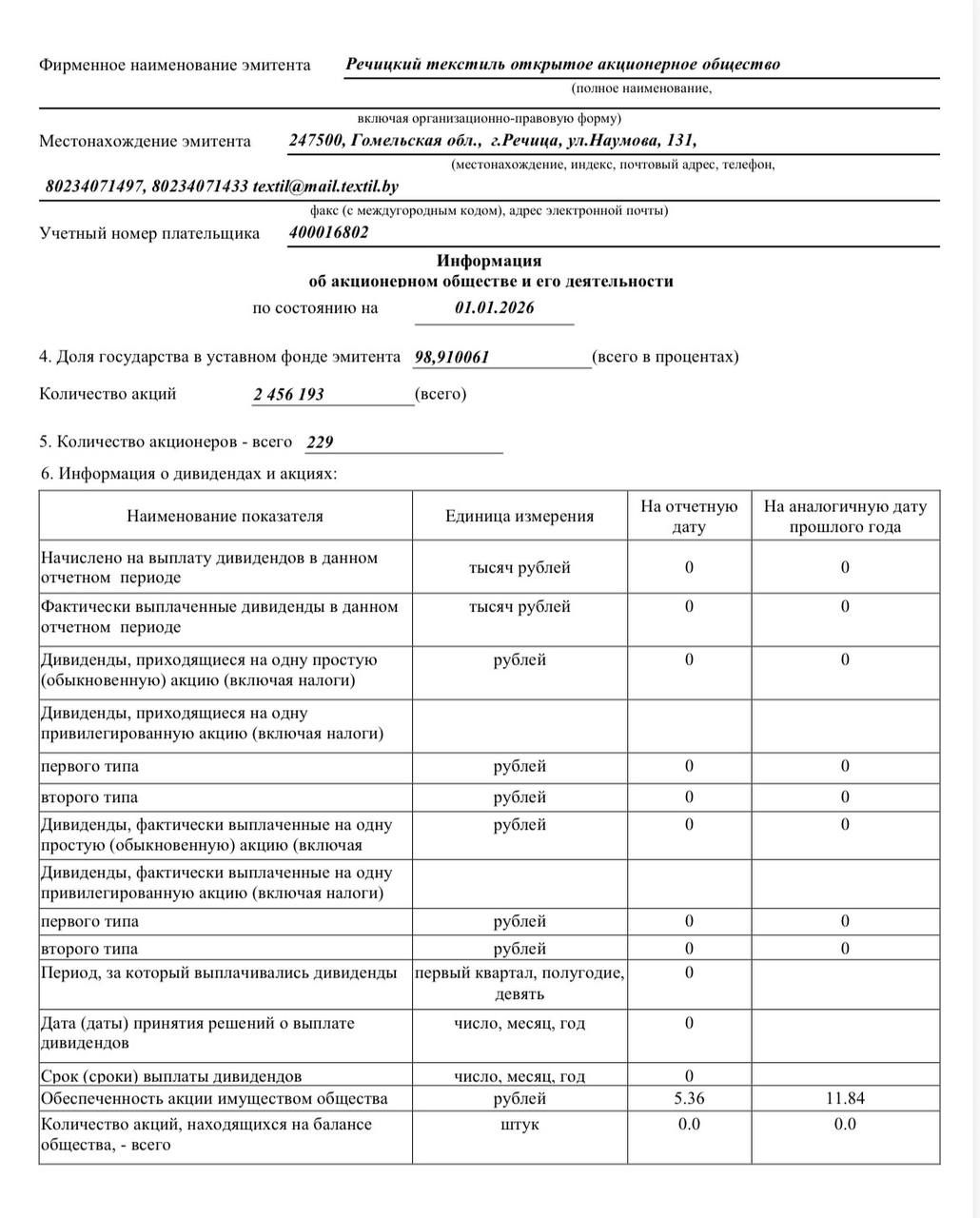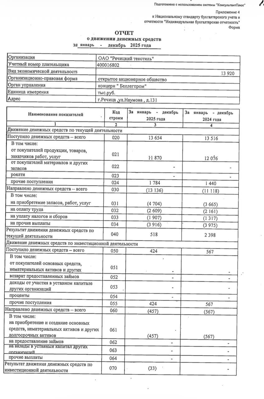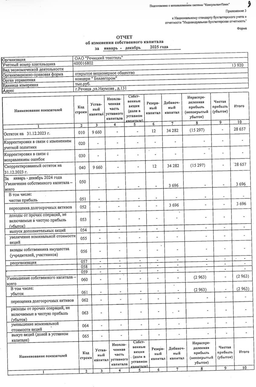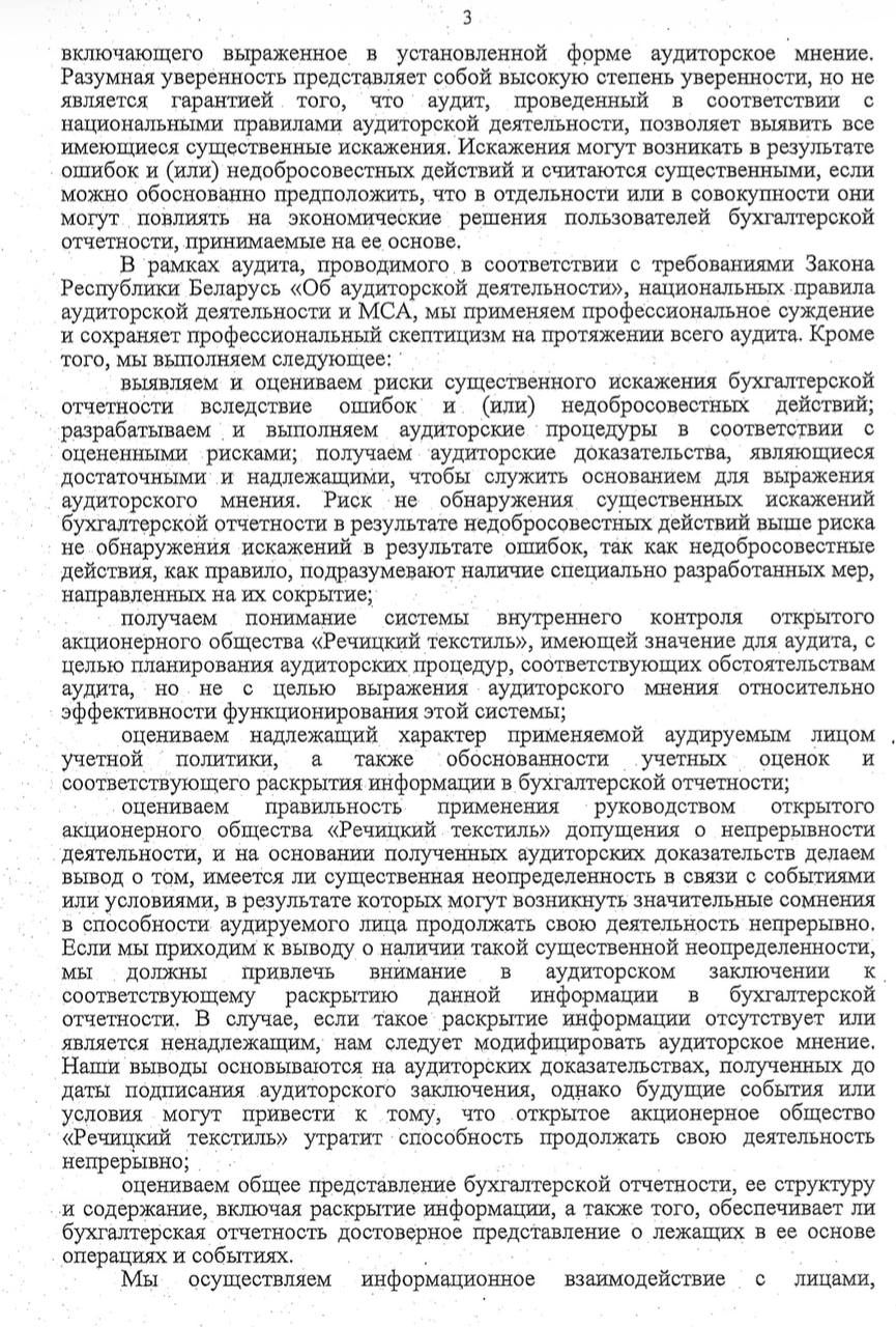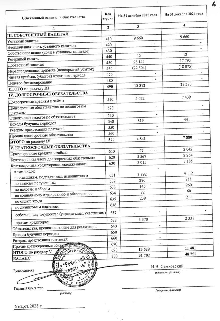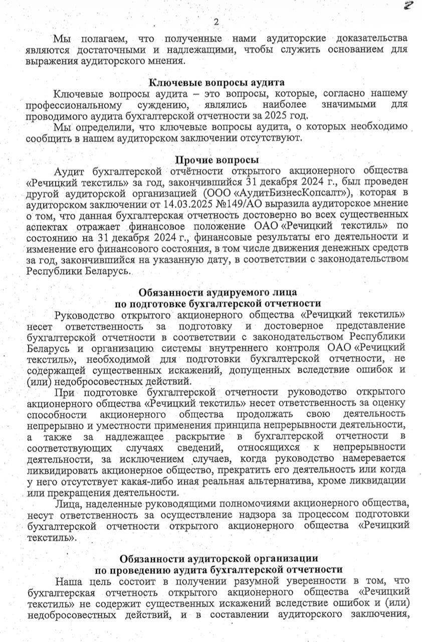 Годовой отчет ОАО "Речицкий текстиль"