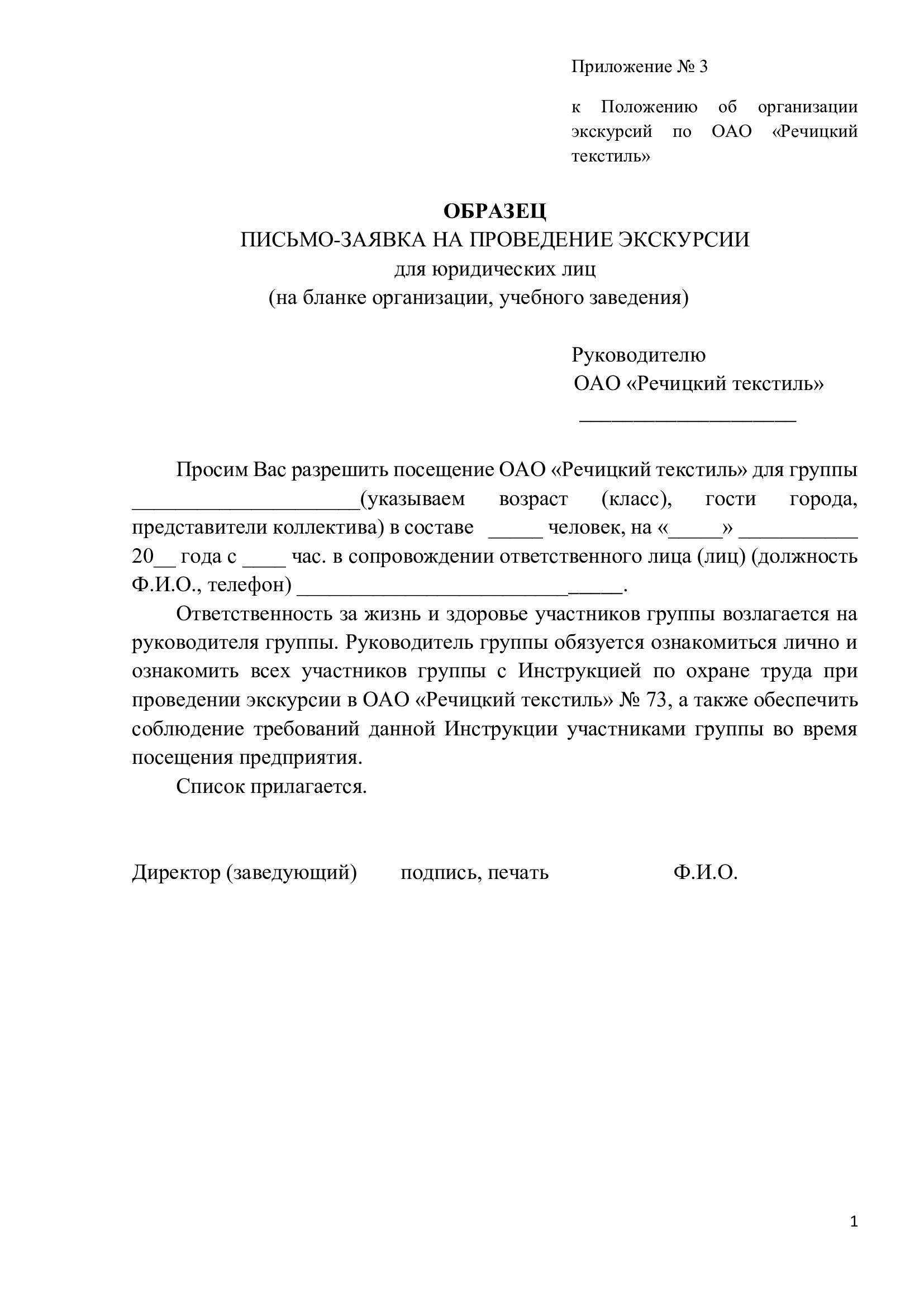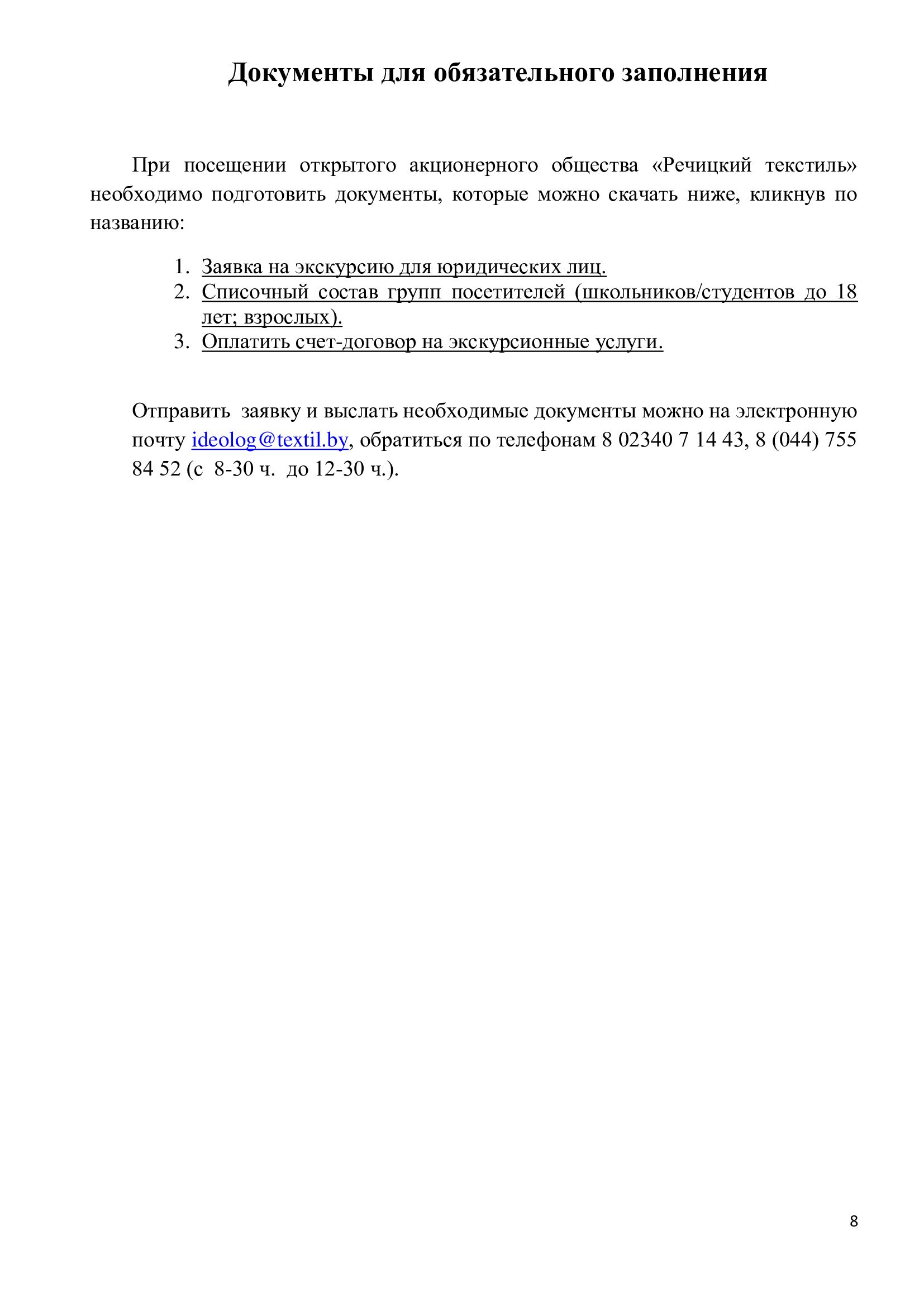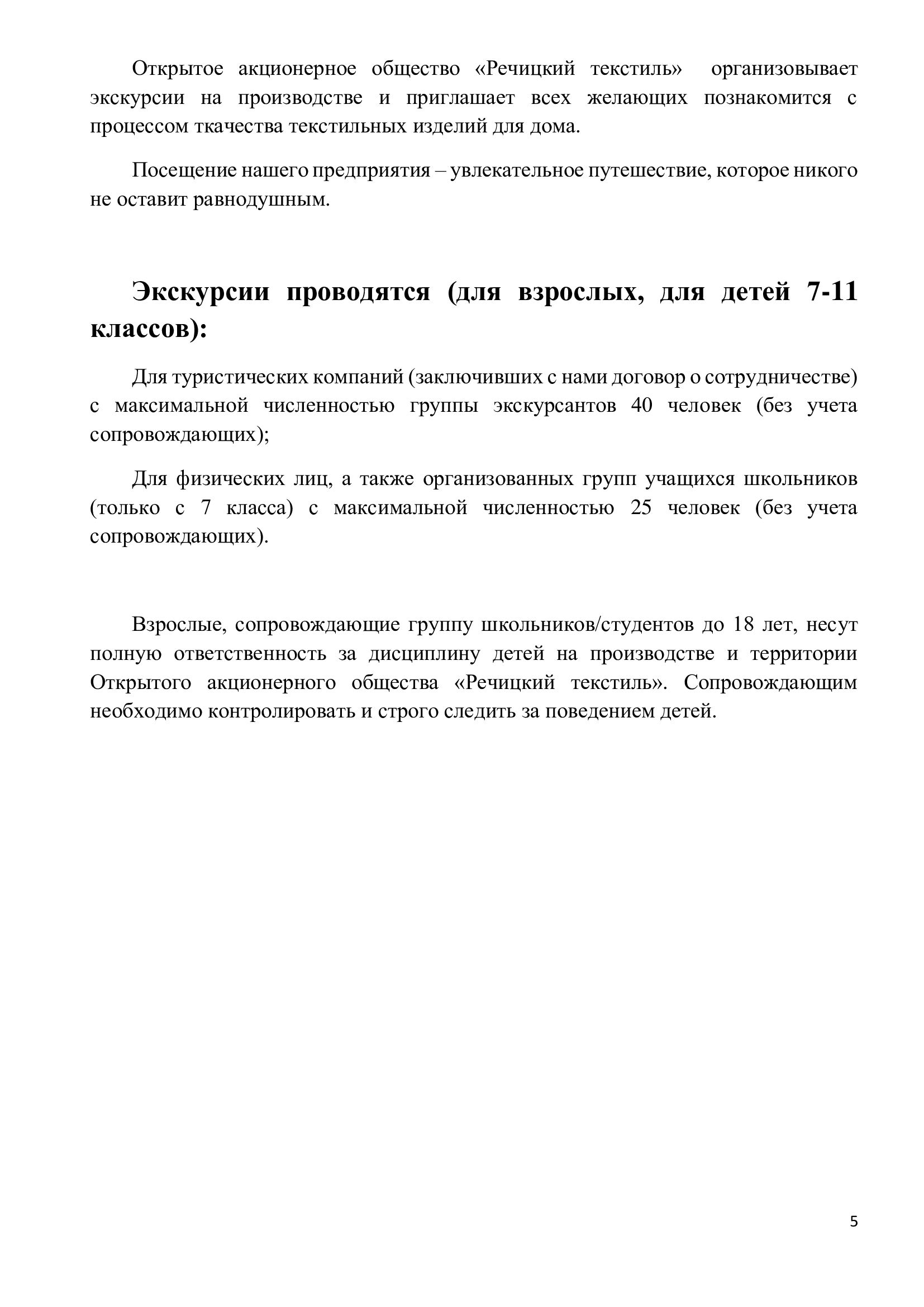 Организация экскурсий в ОАО "Речицкий текстиль"