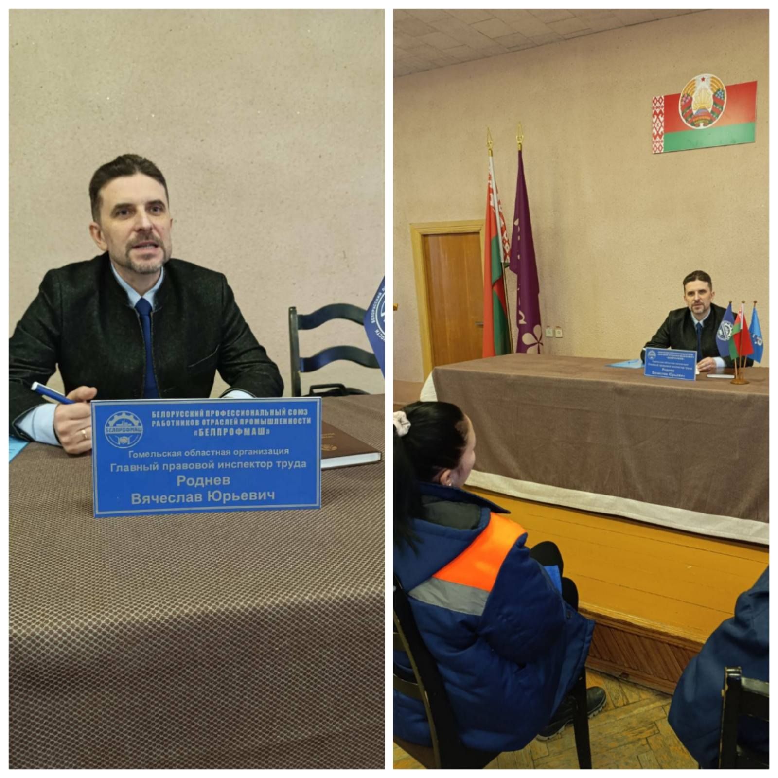 20 января 2025 года в актовом зале ОАО «Речицкий текстиль» состоялся правовой прием с участием правового инспектора Гомельской областной организации работников отраслей промышленности «БЕЛПРОФМАШ» Роднева Вячеслава Юрьевича по теме: «Порядок предоставления трудовых и социальных отпусков».